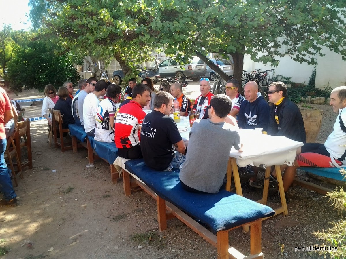 En Tomás em diu de sortir una estona pel seu jardinet. Agafem la nacional de la costa fins a Torredembarra i Roda de Barà. Continuem cap a Bonastre, carretera que encara no havia fet mai amb la bici, i crec que la última que em faltava per tenir-les totes recorregudes, comarcals i provincials, les nacionals les deixo per als cotxes. De Bonastre encarem la pujada a la Plana d'en Pié i planejem fins a la cruïlla de Masllorenç. D'aquí girem a l'esquerra i encarem cap a Salomó, des d'on continuem fins la Nou. Baixem a la carretera de la Riera girant a l'esquerra en direcció al Castellot i Ferran, per anar a petar de nou a la carretera de la costa, on ens trobem alguns conductors que sembla que encara no s'han enterat que les bicicletes també tenen dret a circular amb llibertat per l'asfalt.